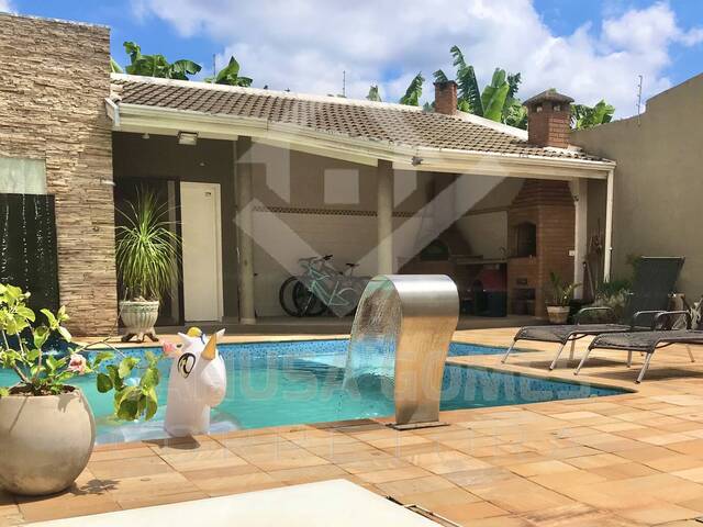 Imóvel contendo 3 suítes com sacada e ar condicionado, 5 banheiros, escritório planejado, sala de estar planejada, sala de jantar, cozinha planejada, despensa planejada, área gourmet planejada e com ar condicionado, área de descanso e lazer com churrasqueira, forno de pizza, edícula, amplo jardim externo na frente e no fundo da casa, uma grande piscina de 40 mil litros e sauna.